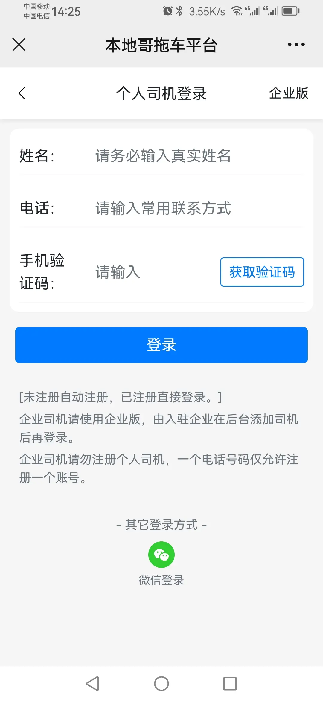 2.在右下角菜单栏中依次选择【司机中心】【个人司机登录】,登录