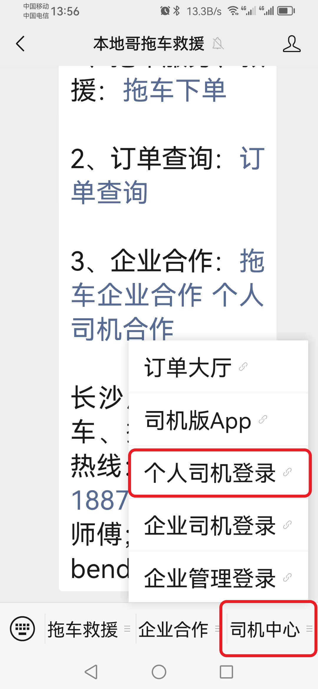1.打开公众号首页,点击右下角菜单栏【司机中心】【司机版App】